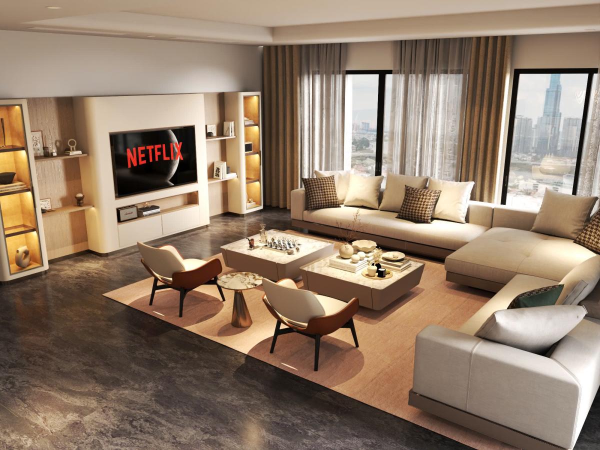 Phòng khách được thiết kế như một tuyên ngôn thẩm mỹ nơi hệ tủ vách ốp sofa bọc da và hệ khung decor được bố trí mạch lạc tạo nên tổng thể hài hòa nhưng vẫn nổi bật dấu ấn riêng. Phòng bếp là sự kết hợp giữa công năng tối ưu và vẻ đẹp thanh lịch với hệ tủ bố trí khoa học tích hợp phụ kiện thông minh mang lại trải nghiệm sử dụng tiện nghi và bền vững theo thời gian. Phòng ngủ mang tinh thần nghỉ ngơi chuẩn mực châu Âu với giường bọc da hệ tủ đồng bộ và ánh sáng dịu nhẹ giúp tạo cảm giác thư giãn tuyệt đối.